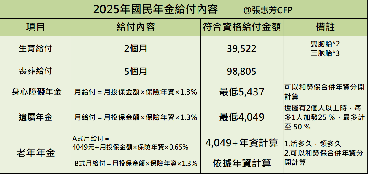 國民年金是針對25歲~65歲的國民,提供多重保障,涵蓋了老年年金、身心障礙年金、遺屬年金長期保障以及生育和喪葬給付等...一次性保障。隨著台灣人口步入「超高齡社會」,國民年金成為維持基本經濟生活的安全網。